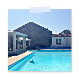 - Piscine 6m x 12m partagée et chauffée par bâche à bulles, balnéothérapie, nage à contre-courant