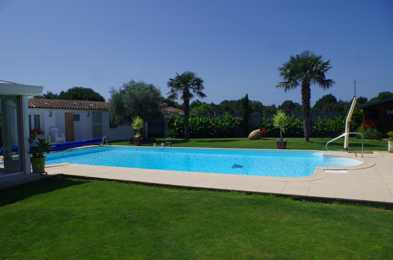 - Piscine 6m x 12m partagée et chauffée par bâche à bulles, balnéothérapie, nage à contre-courant